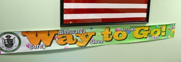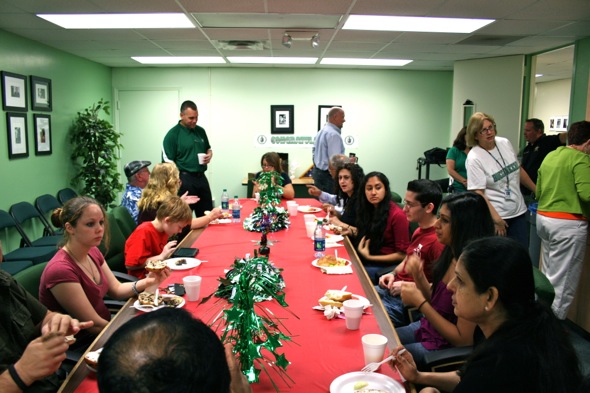 The Gulf High School 2012 valedictorian, salutatorian, IB valedictorian, and IB co-salutatorians and their parents were honored with a breakfast this morning. Information about the five students is here. Pictures from the breakfast are below.