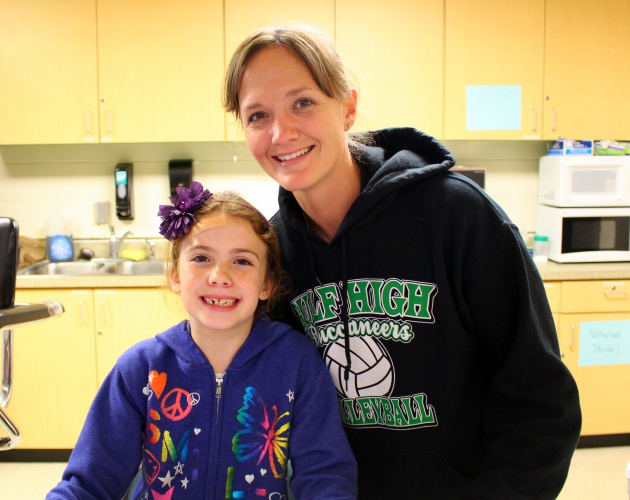 Working the concession stand at Friday night’s girls basketball tournament game are Mrs. Delaney and her daughter Alana, who is 7 and attends Trinity Oaks Elementary School.