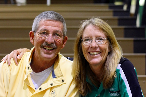 At Monday night’s basketball game, Coach McFarlane and her husband Jim. (