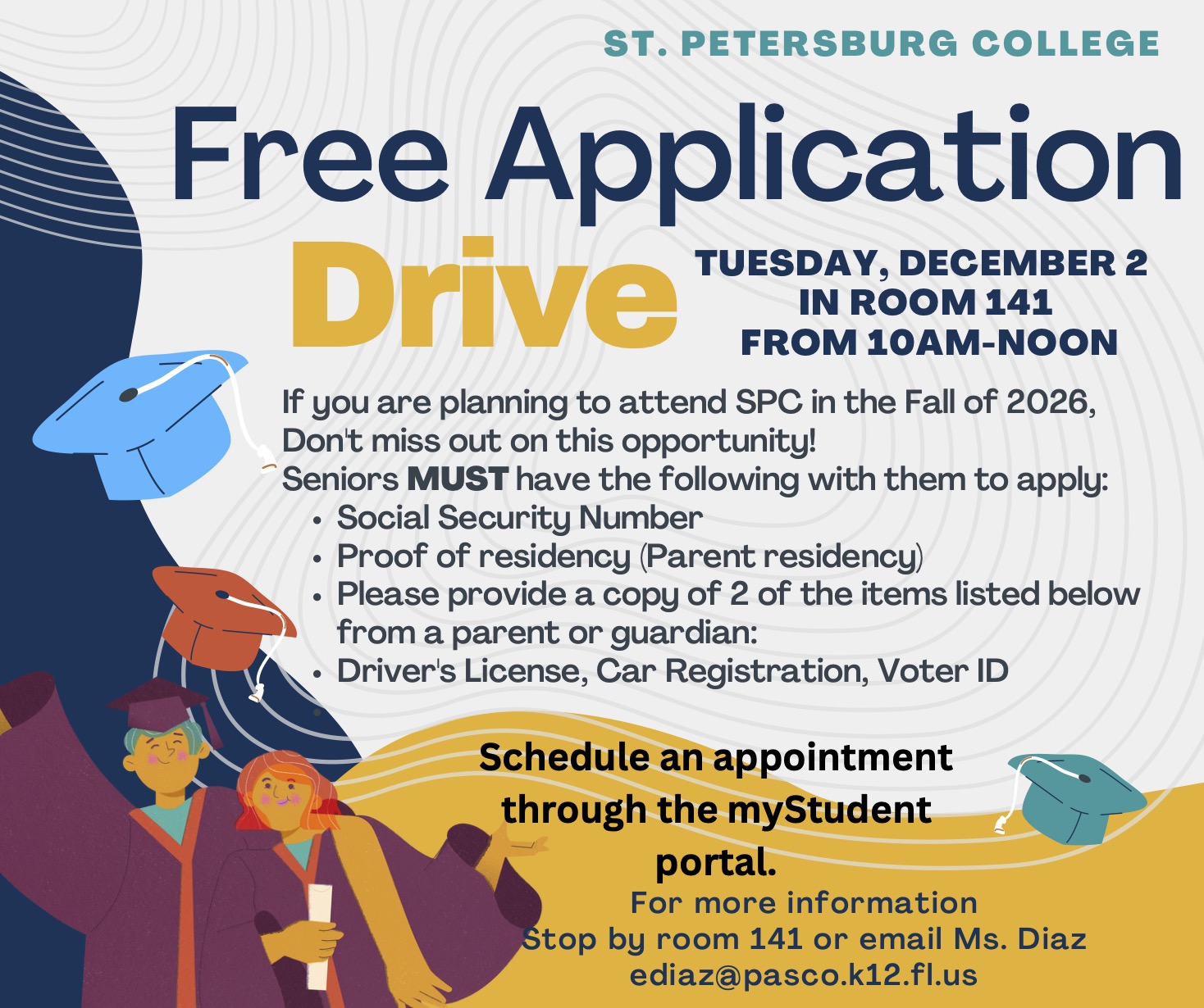 St. Petersburg College is offering a free application day for students interested in attending in the Fall of 2026. Check out the flyer HERE for more information.