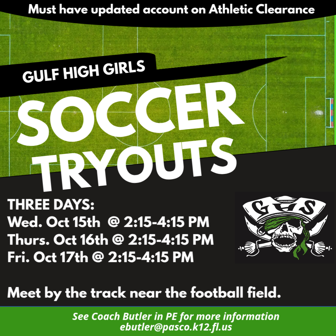 Girls’ Soccer Tryouts Interested in trying out for the girls’ soccer team? Click HERE for more information.