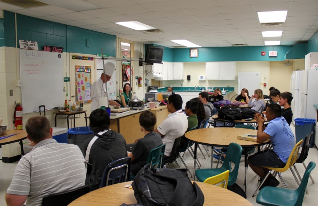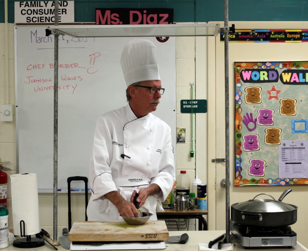 Guest speaker in Diaz Chef Barber from Johnson & Wales University was a popular speaker in Ms. Diaz’s classes today (3/11). Here are two pictures taken during period 3.