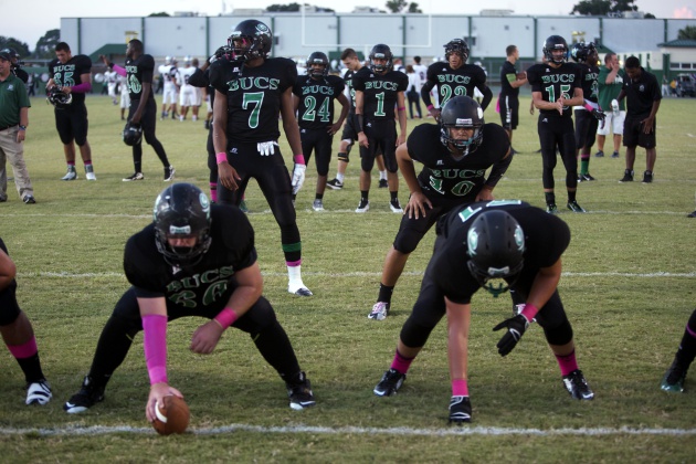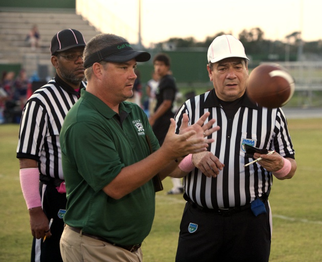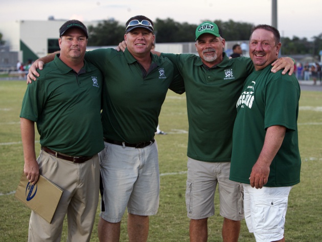Gulf defeated Fivay 40-14 Friday night (10/10). The article at tbo.com is here. The article at tampabay.com is here. Photos below by Mr. Evans and Mr. Miller. Larger photos are in the Football 2014-15 set on Flickr and on our Facebook page.