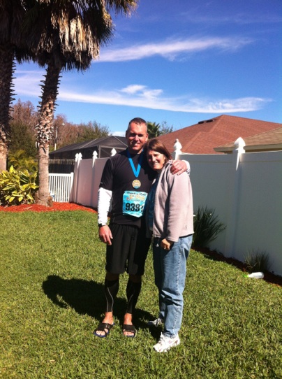 Hey, folks, while most of you were staying under the blankets trying to keep warm at 7:30 Sunday morning, our beloved Principal, Dr. Steve Knobl, was just starting the 13.1-mile run in St. Petersburg. He completed the course in 1 hour, 57 minutes, and 44 seconds. He says he went out too fast, doing the first mile in 7:31, but calmed down after that. In a text message he writes, “Sore but not injured – tired but feel really good to come in under my goal time with only 5-6 runs since Jan. 1. finished strong.” He is pictured below in his running gear with his wife and sons. (Probably wore different shoes though.)