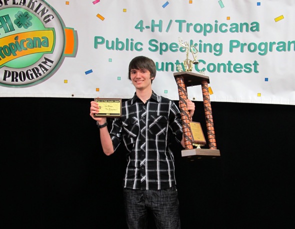 Both students who represented Gulf High School in the 2012 Tropicana Speech Contest on Feb. 23 took first place. Corey Palermo (in the blue shirt) took first place for his speech, which was in the category “to persuade,” and Kris Stolarczyk took first place for his speech, which was in the category “to entertain.” Mrs. St. John, who supplied these photos, reports that both students were awesome! UPDATE: A picture of Corey on the District’s flickr page, is here and a video clip of Corey’s performance on the District’s YouTube channel is here. A picture of Kris on the District’s flickr page is here and a video clip of Kris’s performance on the District’s YouTube channel is here.