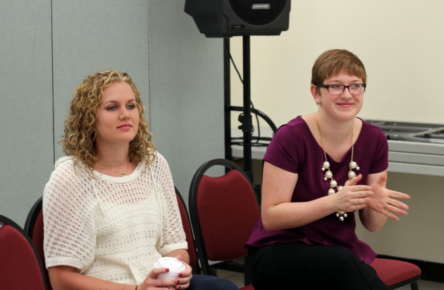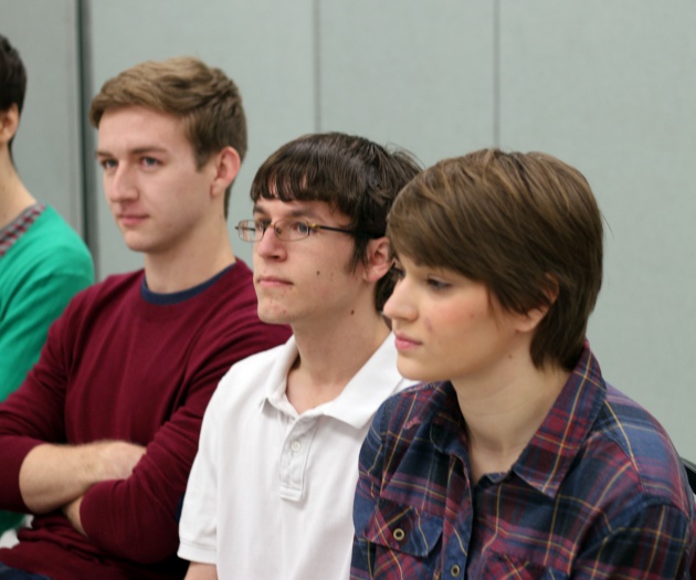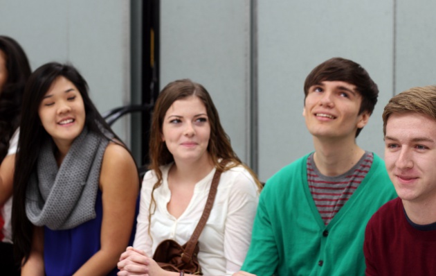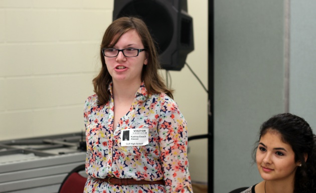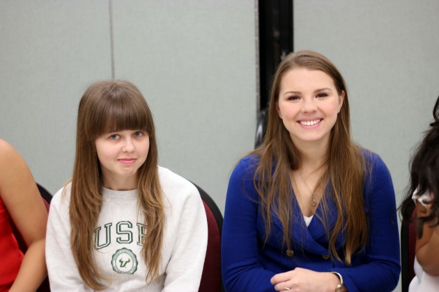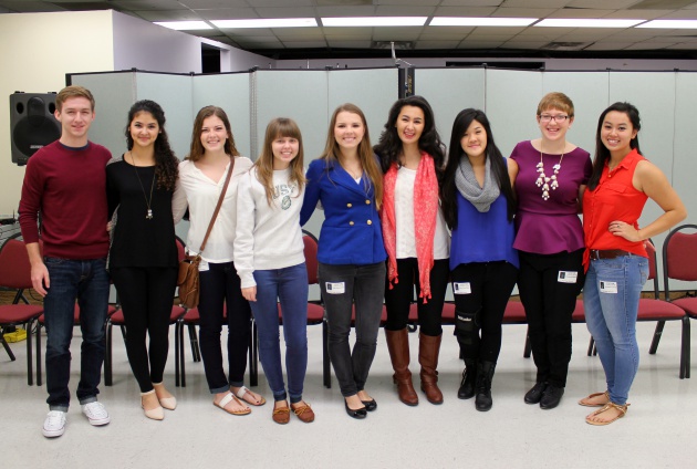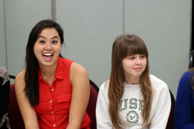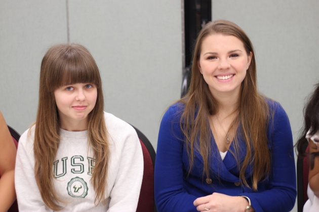 It’s a tradition at Gulf High for many of our IB alumni to return on the last day before winter break to talk to current IB students about college life. In the top photo are Philip Kubiszyn, Casey Siena, Brittany Reid, Kateryna Ryabinova, Olga Sanuikovich, Kristina Kanaan, Thuy Pham, Lizzy Mapes, and Jackie Chung. (larger picture)