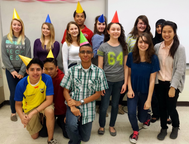 Here is one of Ms. Schrader’s 9th grade pre-IB Inquiry Skills classes. They earned a party by winning the Schrader House Cup for the second time this year. (larger picture)