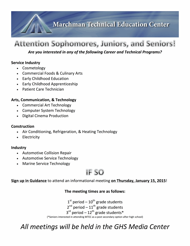 Marchman representatives to visit Gulf Representatives from Marchman Technical Education Center will be on our campus on Thursday, Jan. 15.