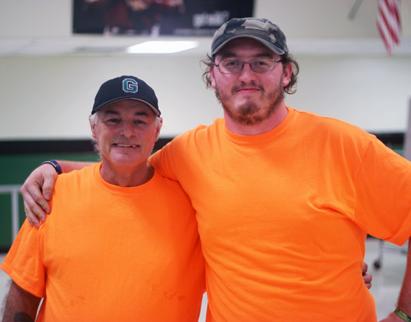 Matching orange Two of our custodians dressed alike in orange today (10/29). They are Steve Rampacek and Ron Davis.