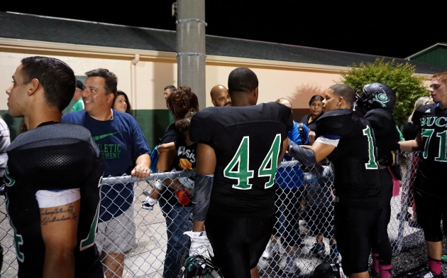 Maybe the start of a new tradition Gulf players shook hands with fans along the fence after tonight’s game, perhaps starting a new tradition. Final score: Gulf 40, Fivay 14.