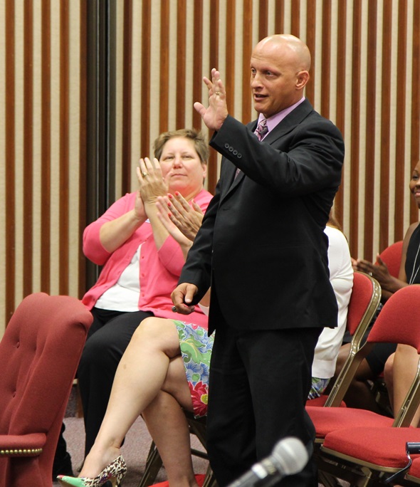 It’s official. Travis DeWalt is now an assistant principal at Gulf High School. This photo was taken by Andy Dunn at the July 2 school board meeting. A larger photo is here.