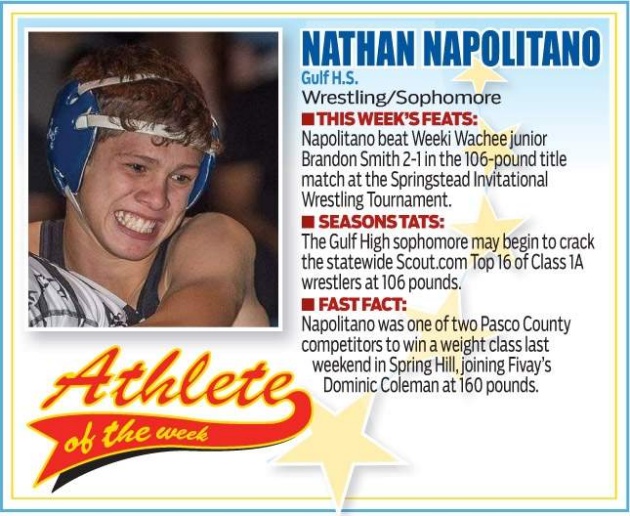 Gulf wrestler Nathan Napolitano is the Pasco Athlete of the Week at the Suncoast News.