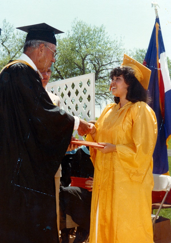 Shock Photo of the Day Actually, two old photos today, showing Mrs. Gabay. In the second photo she is receiving her high school diploma in 1983 at Gateway High School in Aurora, Colorado. Mrs. Gabay says that at that time she did not speak English.