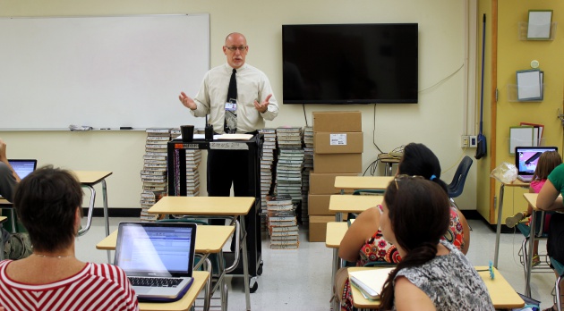 Teachers reported back to work on Monday (8/11) for a week of planning. In the photo below, Mr. Page, Gulf’s assistant principal for IB, speaks to IB teachers on Aug. 13.