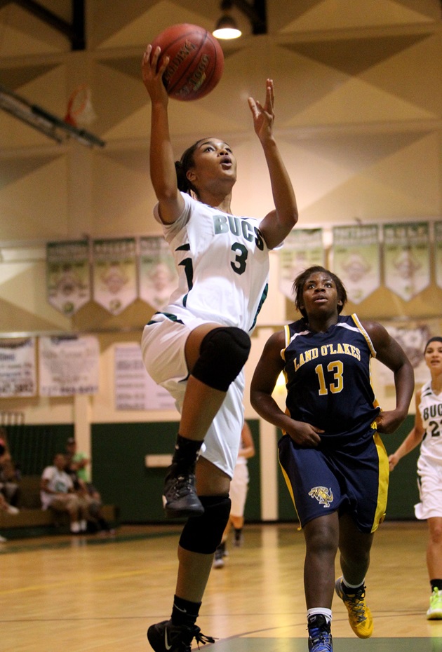 The Tampa Bay Times article on the Dec. 10 girls basketball win over Land O’ Lakes is here. Thanks, Times, for the photo below. Jalena Hawkins (3) drives past (13) Jhade Hayes on her way to the basket. Photo by Brendan Fitterer. The Tampa Tribune article is here.