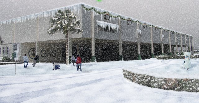 Winter scene at GHS! Here’s Gulf High School during the winter break. Photo by Mr. Stoneking, possibly photoshopped. (larger)